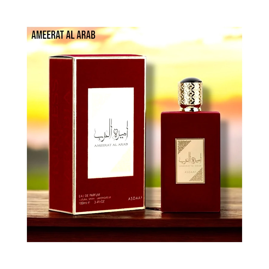 Az Ameerat Al Arab az Asdaaf márkától egy luxus citrus és pézsma eau de parfum nőknek. A friss nyitást az aloe vera lágysága és a fehér pézsma ellenállhatatlan vonzereje egészíti ki. Ezt az abszolút egyedi kompozíciót a jázmin, az oud, a fás jegyek és a pézsma ízletes kombinációja zárja.
